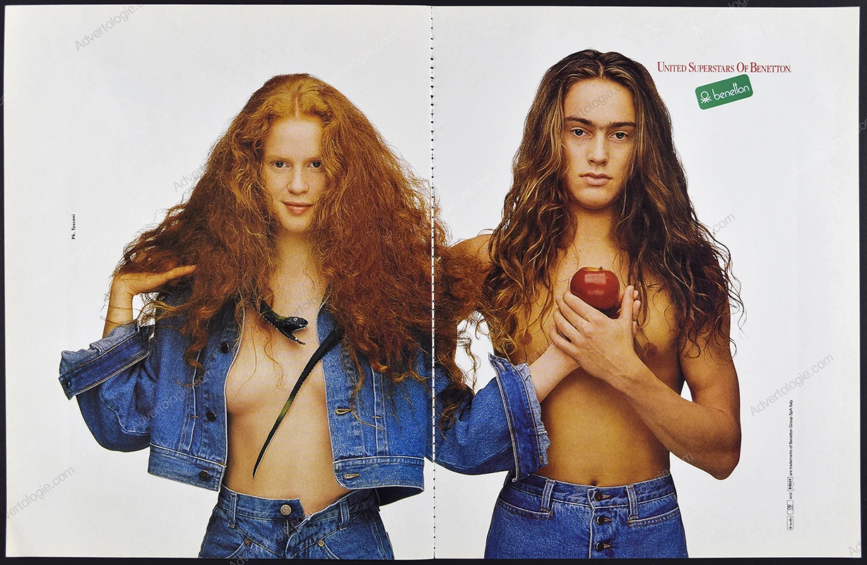 “Joan of Arc & Marylin Monroe”, “Adam & Eve”. This Benetton original 4-page print ad comes from a magazine published in 1988. Not a reproduction or reprint.