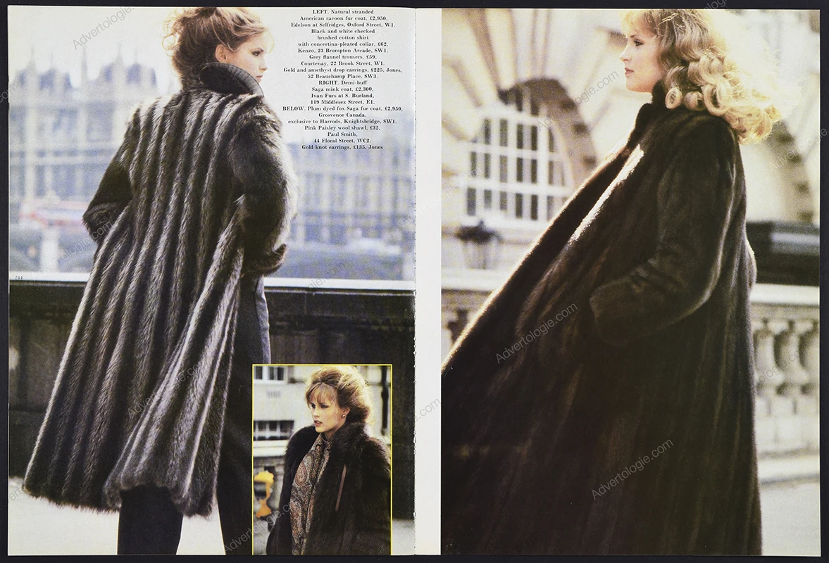 This original 6-page fur fashion editorial comes from a magazine published in 1981. Not a reproduction or reprint.