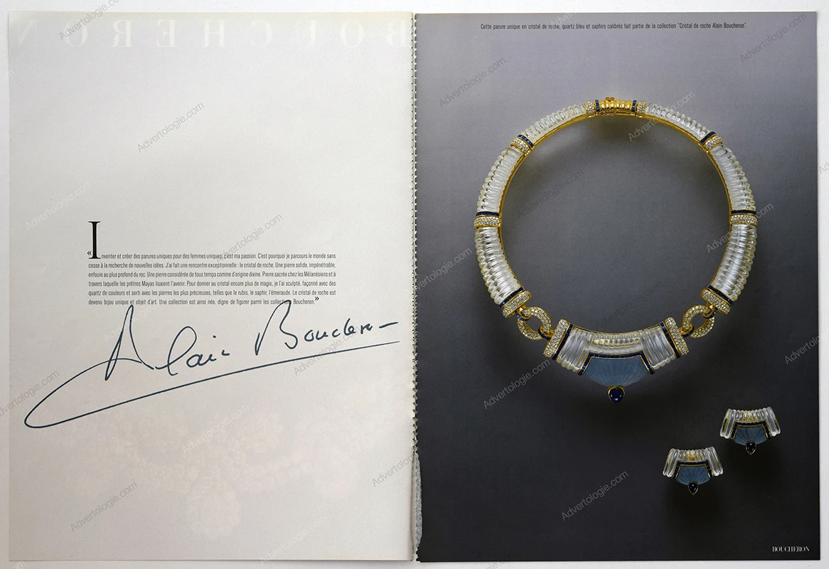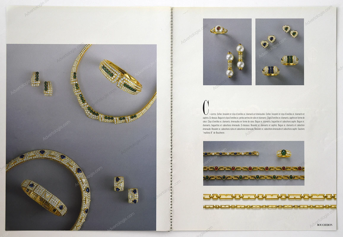 This Boucheron jewelry original 8-page magazine insert ad comes from a magazine published in 1984. Not a reproduction or reprint.