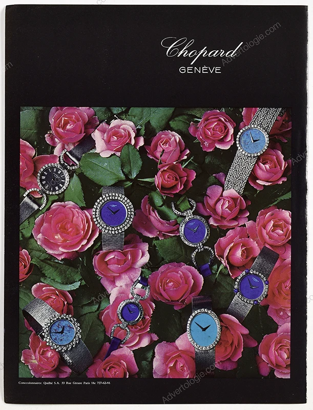 This Chopard jewelry original print ad comes from a magazine published in 1970. Not a reproduction or reprint.