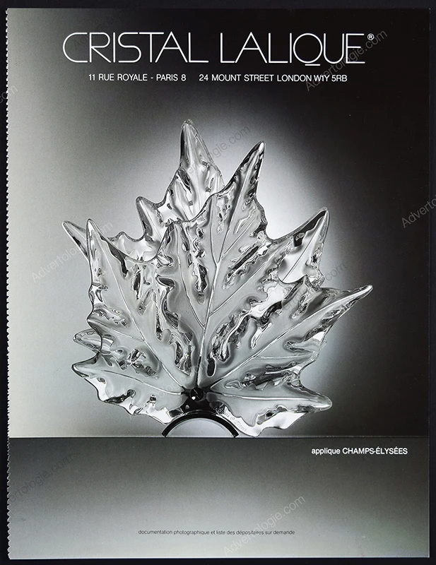 This Cristal Lalique original print ad comes from a magazine published in 1986. Not a reproduction or reprint.