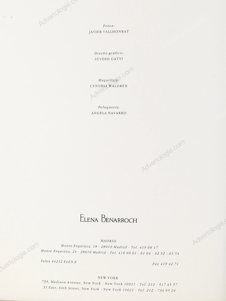 Elena Benarroch Furs Fall Winter 1987-1988 Catalog Lookbook – Javier Vallhonrat