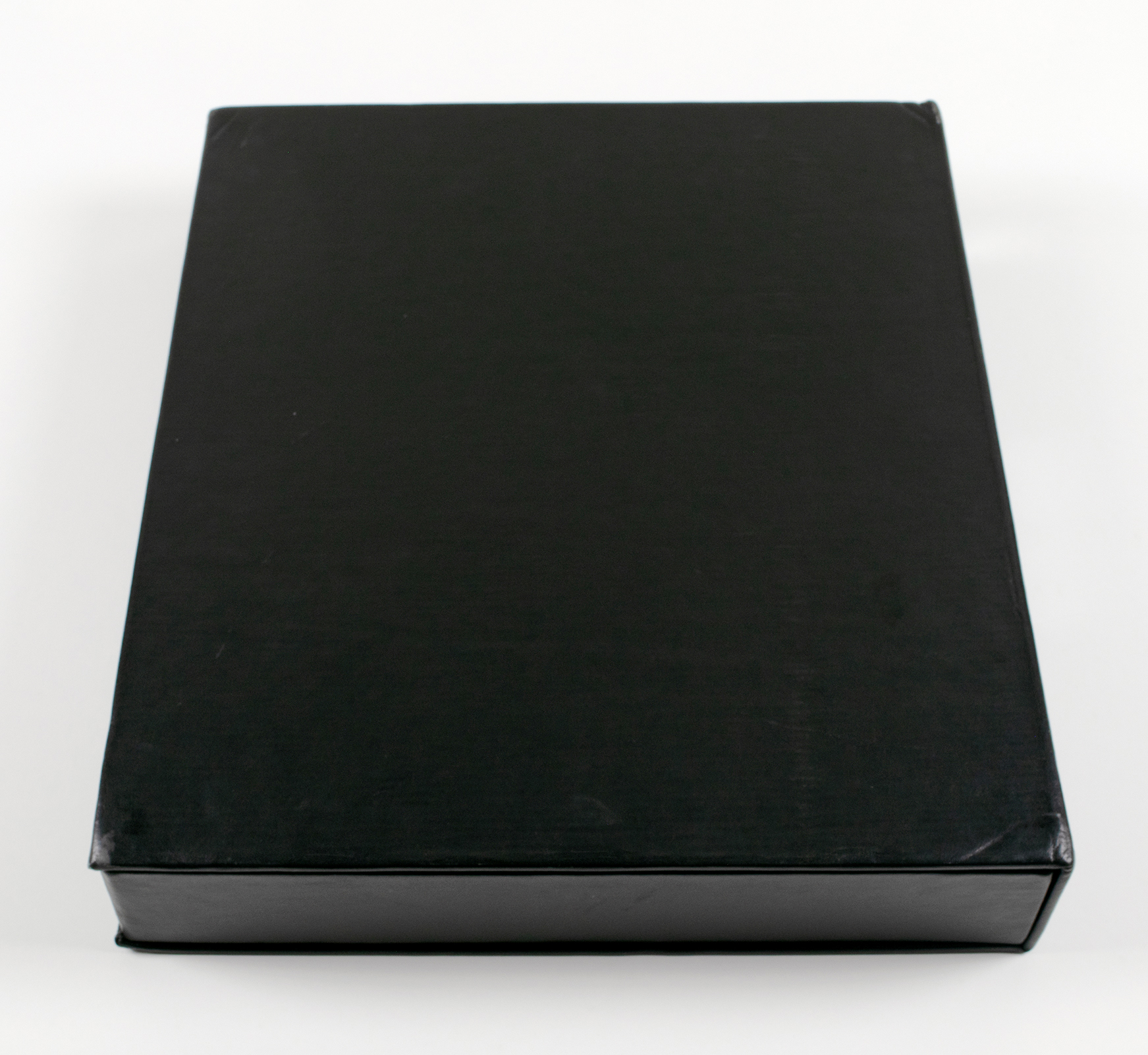 The book itself remains in mint condition, with no signs of handling. The interior of the case is likewise pristine. The exterior shows only minimal evidence of careful handling: two small rubs to the side corners and four very faint pressure marks on the front, visible only under certain light. The leather overall is clean, supple, and free from scratches.