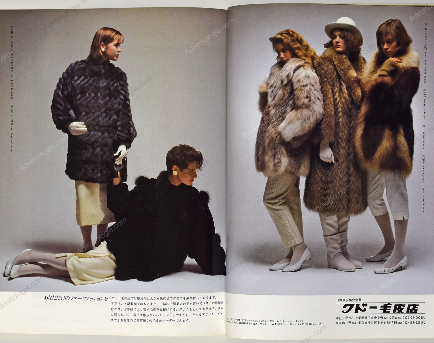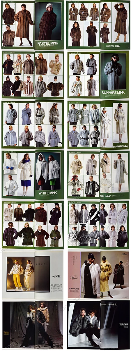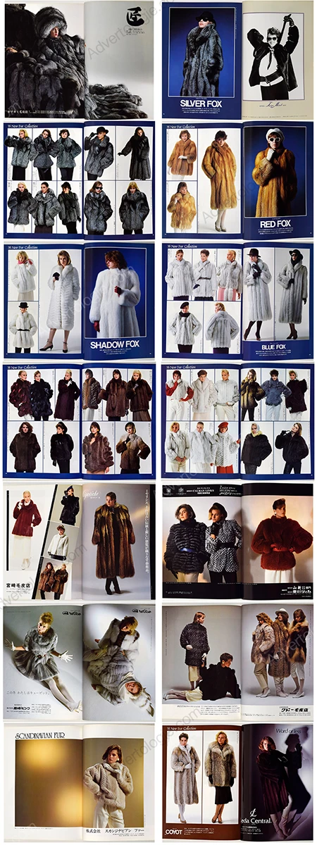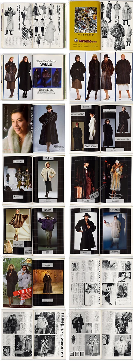 Brands/Designers: Calman Links, Zwirn, Melloni, Jane Lofty, Fur Gliser, Leda Central, Eve Fur, Dai-Chi Fur, Moonbat, Saga, OS Fur, Ishibama, Saikatsu, Rotiny, Nakamura Fur, Sojuzpushnina, Tohomink, Valentino Garavani, Pierre Balmain, Givenchy, Christian Dior, Kenzo, Jerry Sorbara, Mel Aveldy, Jean Paul Gaultier, Viscardi, Maurice Kotler, Evans USA, Golden Leaf, Madame Lina, Chloé, Natural Furs, Dolman Sleeve, Kudo Fur, Nichiro Mink, White Mink Co., Nichiro Fur, Kawashima, Scandinavian Fur, Miyazaki Fur, Royal Fur, Matsumoto, Ocean Mink, Emiya Fur, Ohki Fur, Silk Bird Ltd., My Sable, Paondor’e, Kitagawa Shoji, Hayakawa Fur, Takumi, Kanalon, Miyariche, Harly, Nisshin Fur, Shiozawa Fur, Sakaguchi Fur, Paco, Nihon Co., Fur Horn, OFF Fur, Ozawa Co. and many more.