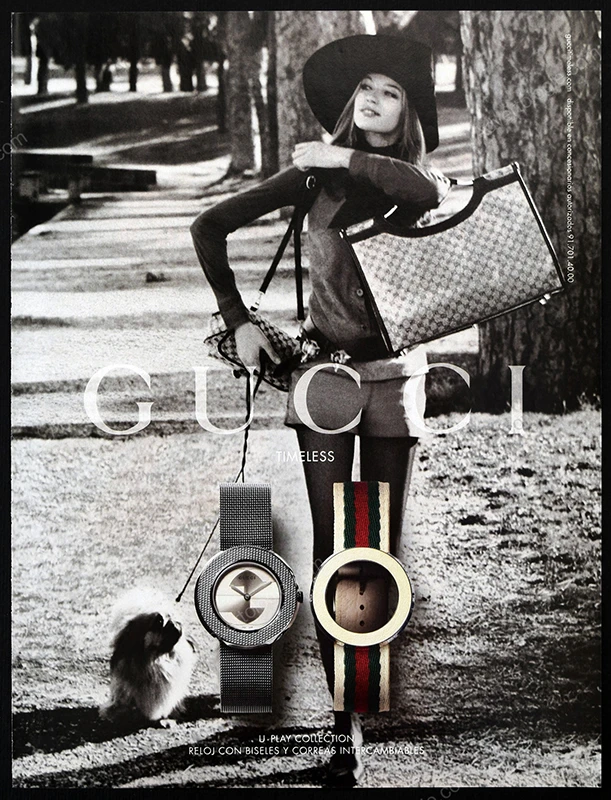 This Gucci U-Play watch collection original print ad comes from a magazine published in 2002. Not a reproduction or reprint.