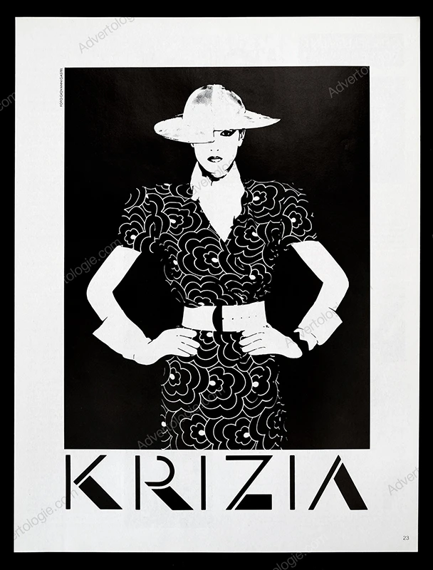 This Krizia apparel original print ad comes from a magazine published in 1985. Not a reproduction or reprint.