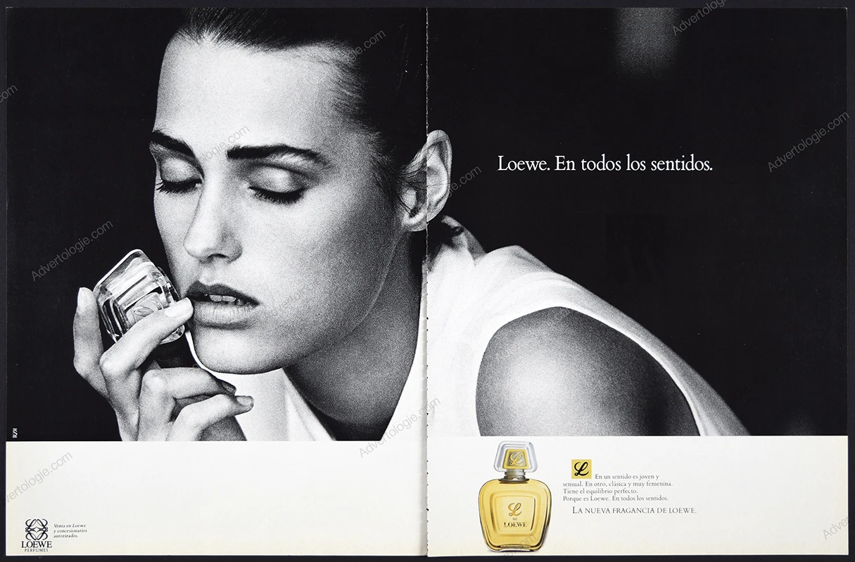 This L de Loewe perfume original print ad comes from a magazine published in 1990. Not a reproduction or reprint.