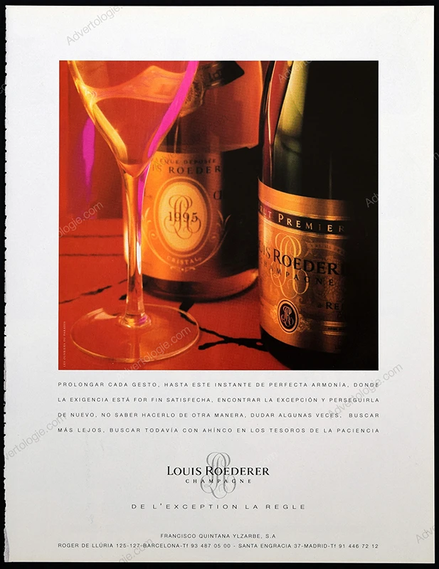 This Louis Roederer champagne print ad comes from a magazine published in 2001. Not a reproduction or reprint.