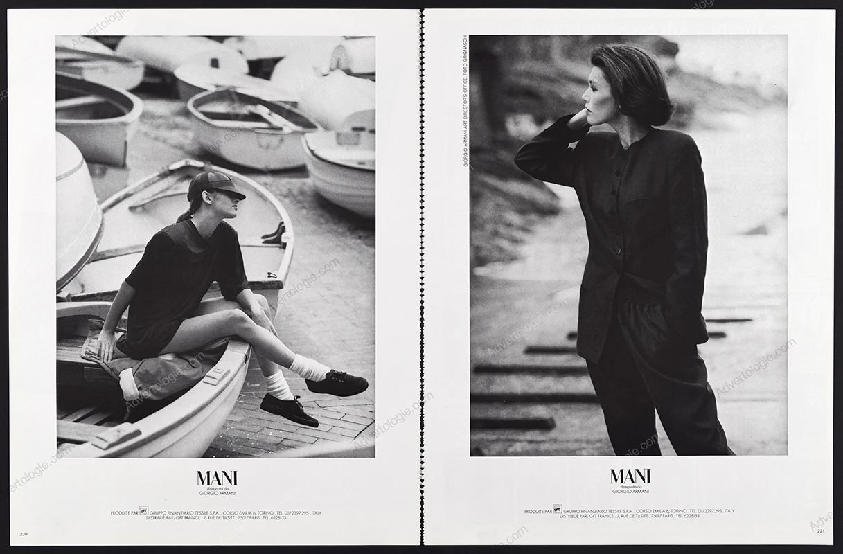 This Mani Giorgio Armani apparel original print ad comes from a magazine published in 1986. Not a reproduction or reprint.