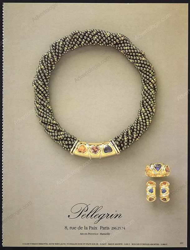 This Pellegrin jewelry original print ad comes from a magazine published in 1977. Not a reproduction or reprint.