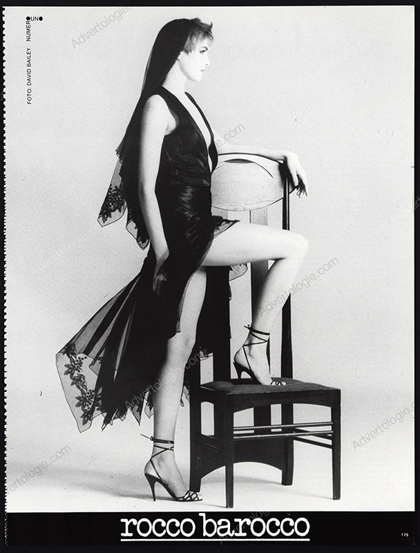 This Roccobarocco apparel original print ad comes from a magazine published in 1985. Not a reproduction or reprint.