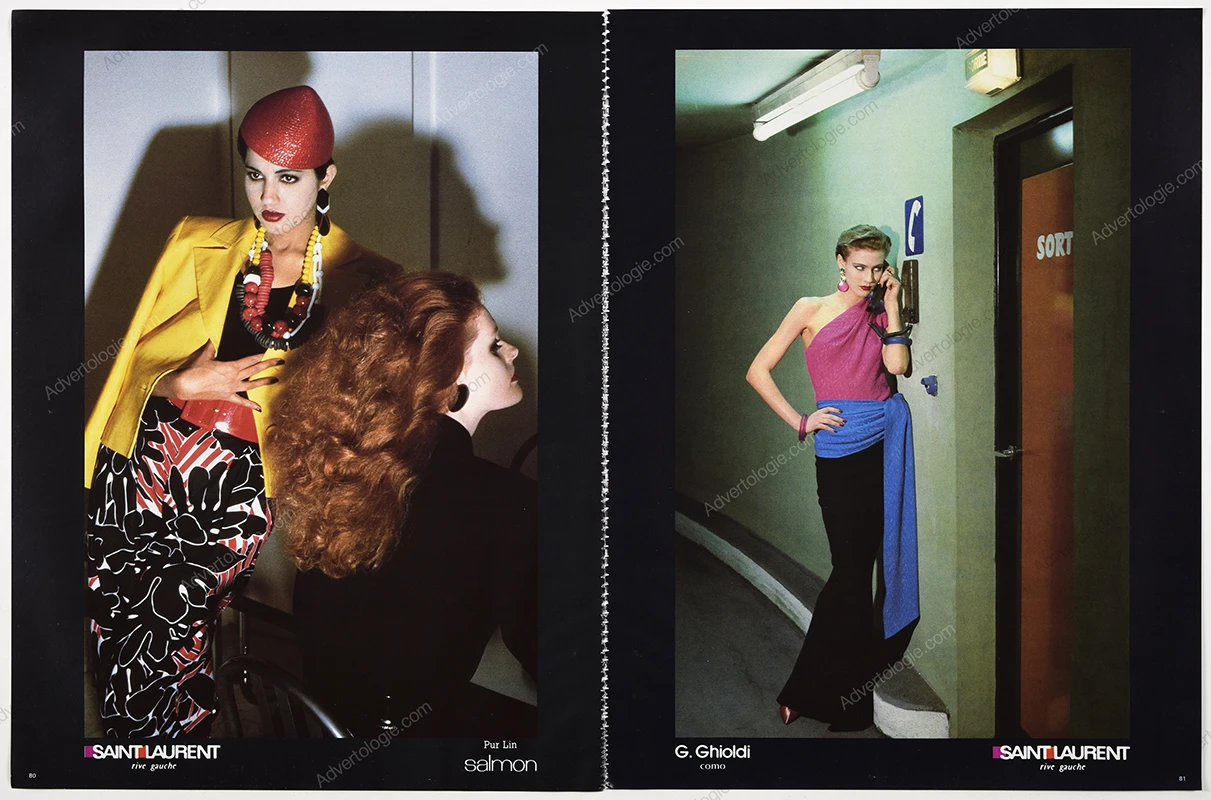 This Saint Laurent Rive Gauche original 9-page advertorial comes from a magazine published in 1985. Not a reproduction or reprint.
