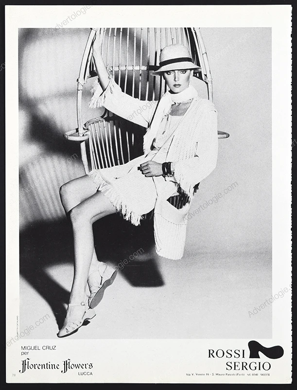 This Sergio Rossi shoes original print ad comes from a magazine published in 1977. Not a reproduction or reprint.