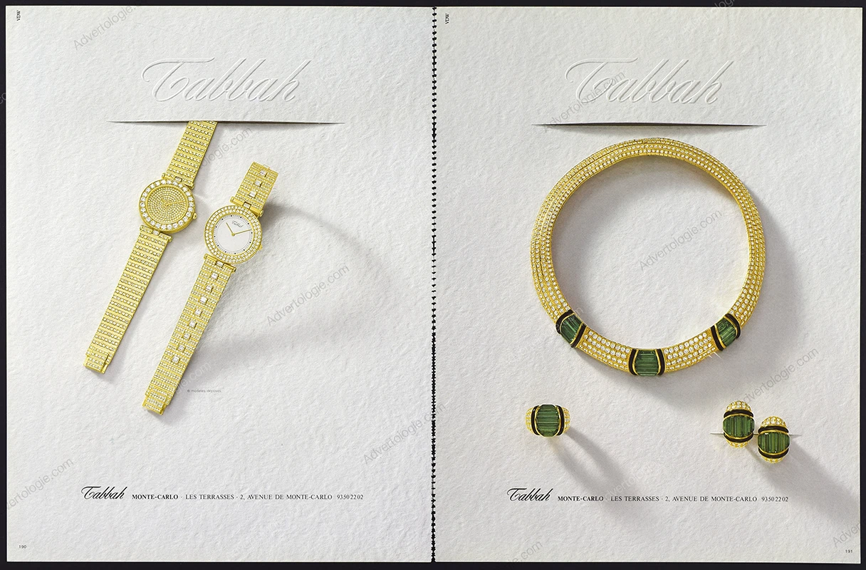 This Tabbah jewelry & watches original print ad comes from a magazine published in 1986. Not a reproduction or reprint.