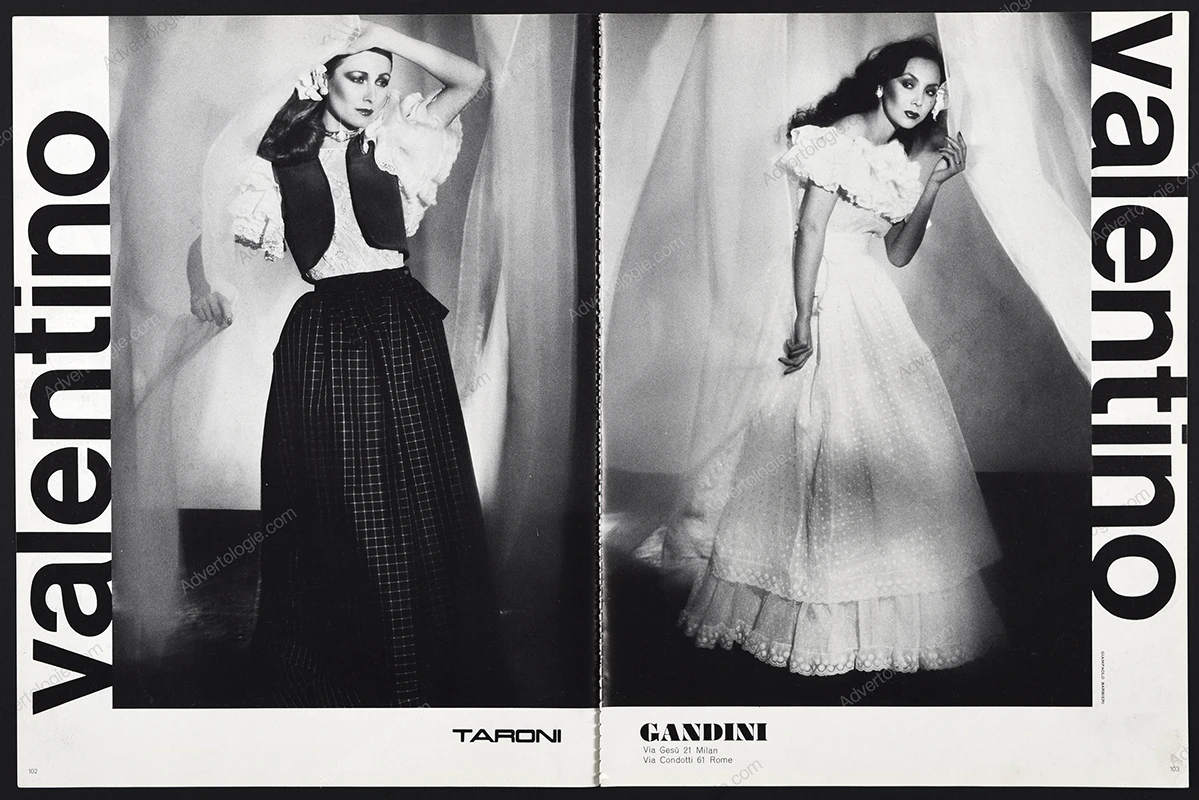 This Valentino original 4-page advertorial comes from a magazine published in 1977. Not a reproduction or reprint.